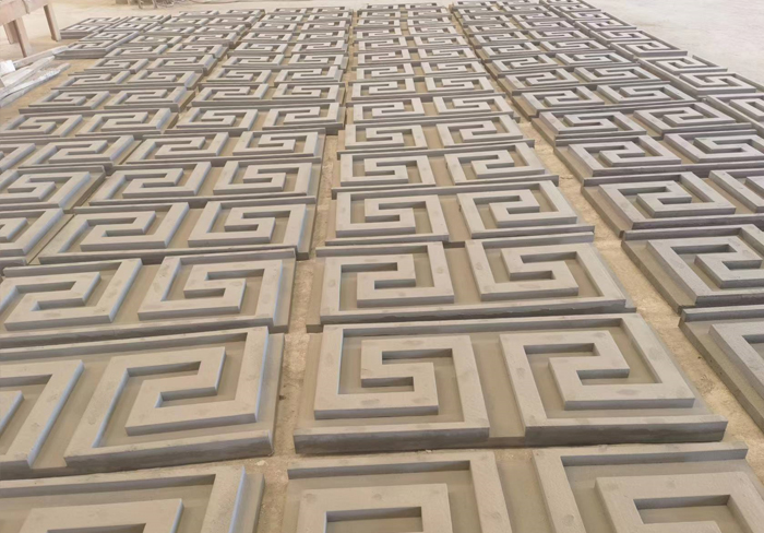 采用機(jī)械噴制加工,高溫養(yǎng)護(hù)成型,大型構(gòu)件采用鋼骨架節(jié)點(diǎn)方式